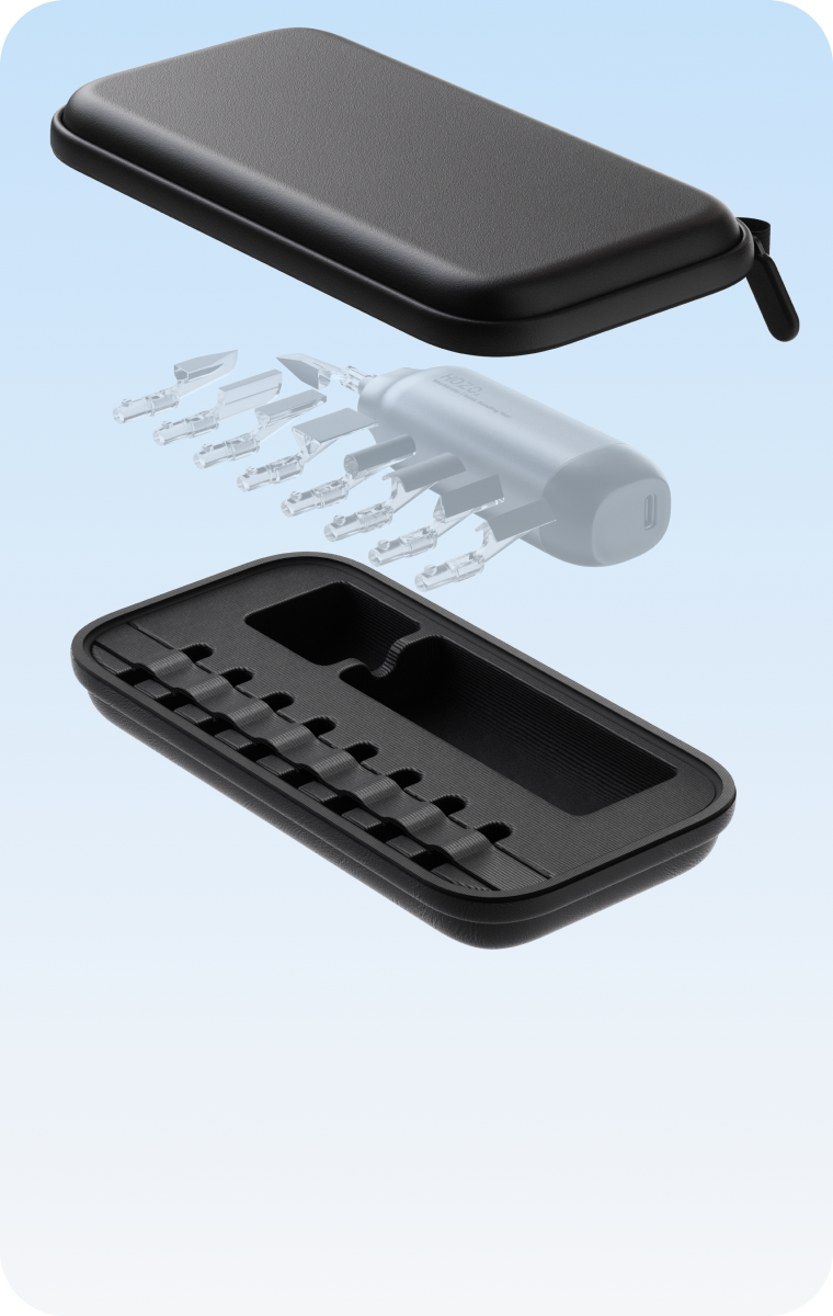 We prioritized a compact, lightweight, and well-balanced form for precise detail work. It's designed for continuous use when plugged in, so prolonged operation isn't an issue.