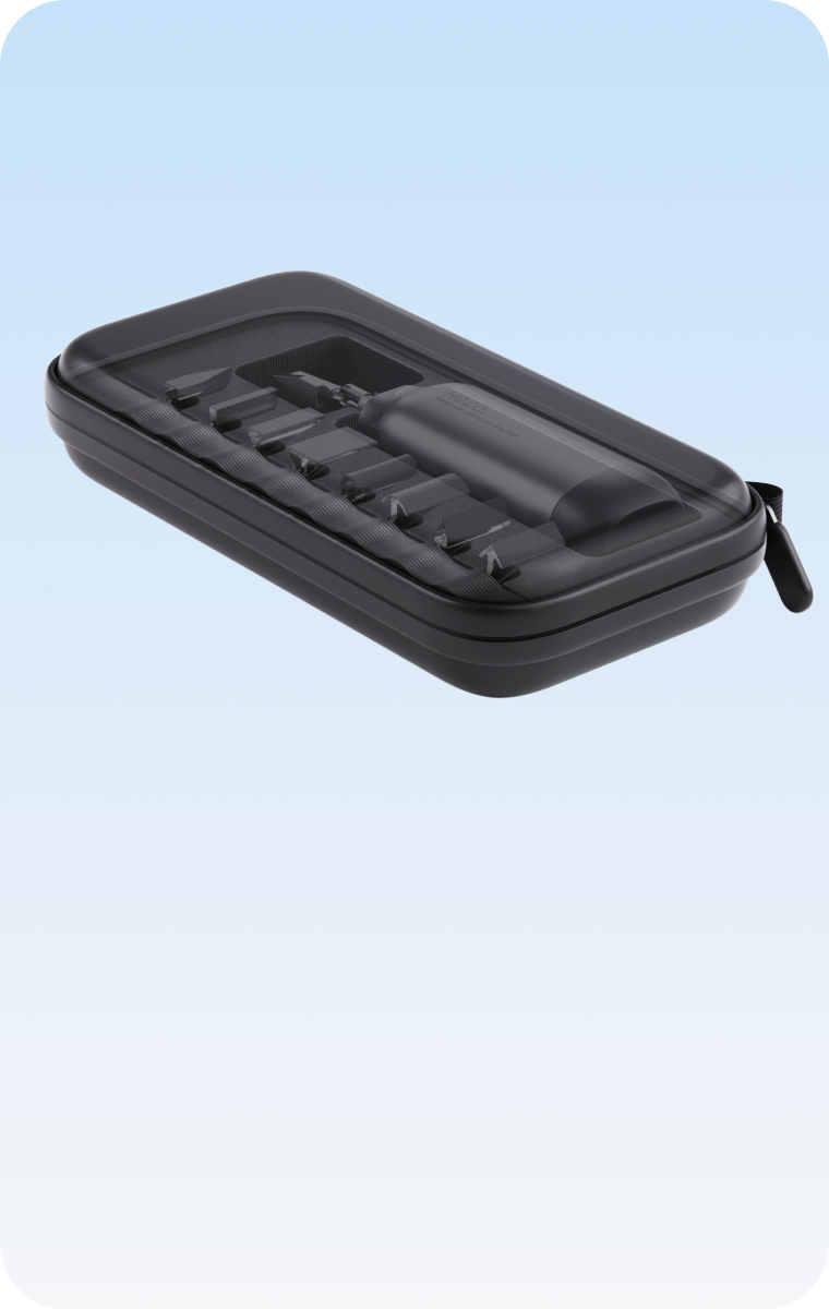 We prioritized a compact, lightweight, and well-balanced form for precise detail work. It's designed for continuous use when plugged in, so prolonged operation isn't an issue.