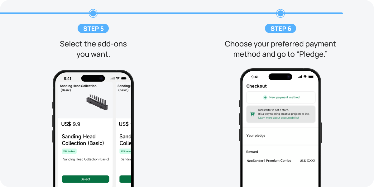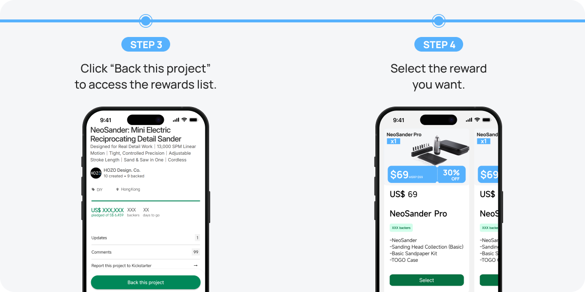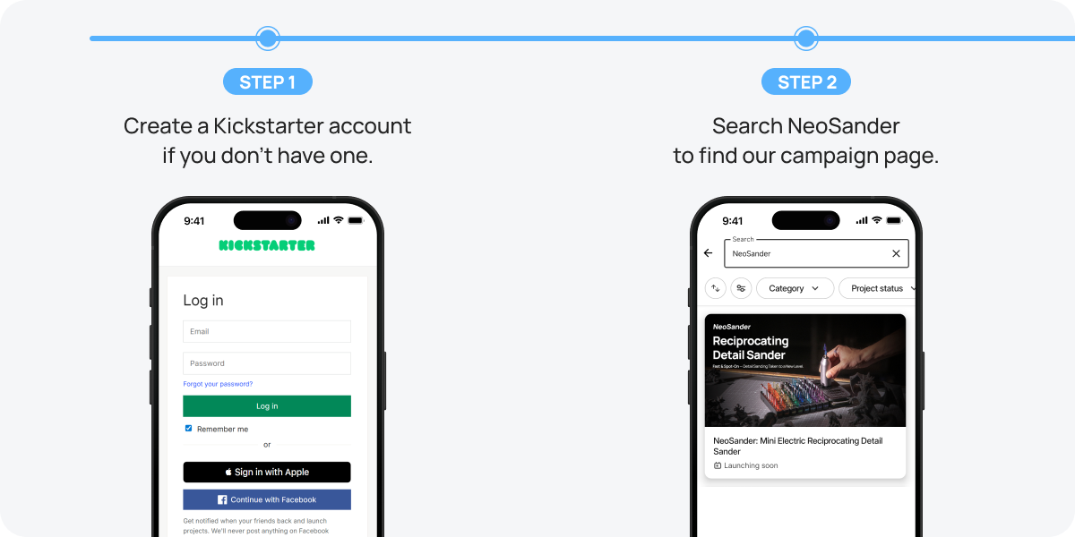 Place a fully refundable $1 deposit to join our VIP list and receive a sandpaper set (worth $19) for free toward your pledge — plus early access to NeoSander’s Kickstarter launch.